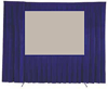 Designed to enhance the image and give a professional appearance.Made from fire retardant blue cotton velour drapery. Attaching to the screen's frame with 'snap on' poppers. The complete kit contains a valance bar, a 14" valance drape, wing bars, with 2 x 30" wide wing drapes and a 45" long skirt.